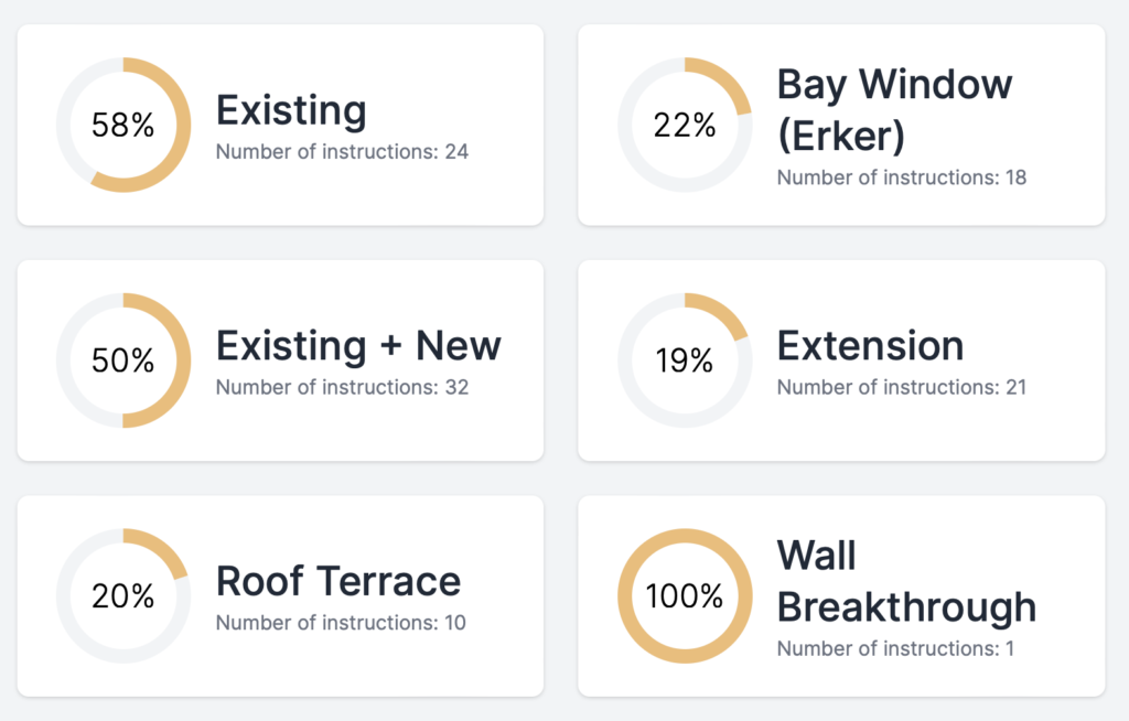 Take charge of your BIM projects with a project dashboard that features live progress tracking and an overview of all ongoing projects. Stay in control with fast filtering options and gain a comprehensive understanding of the progress made on each project.